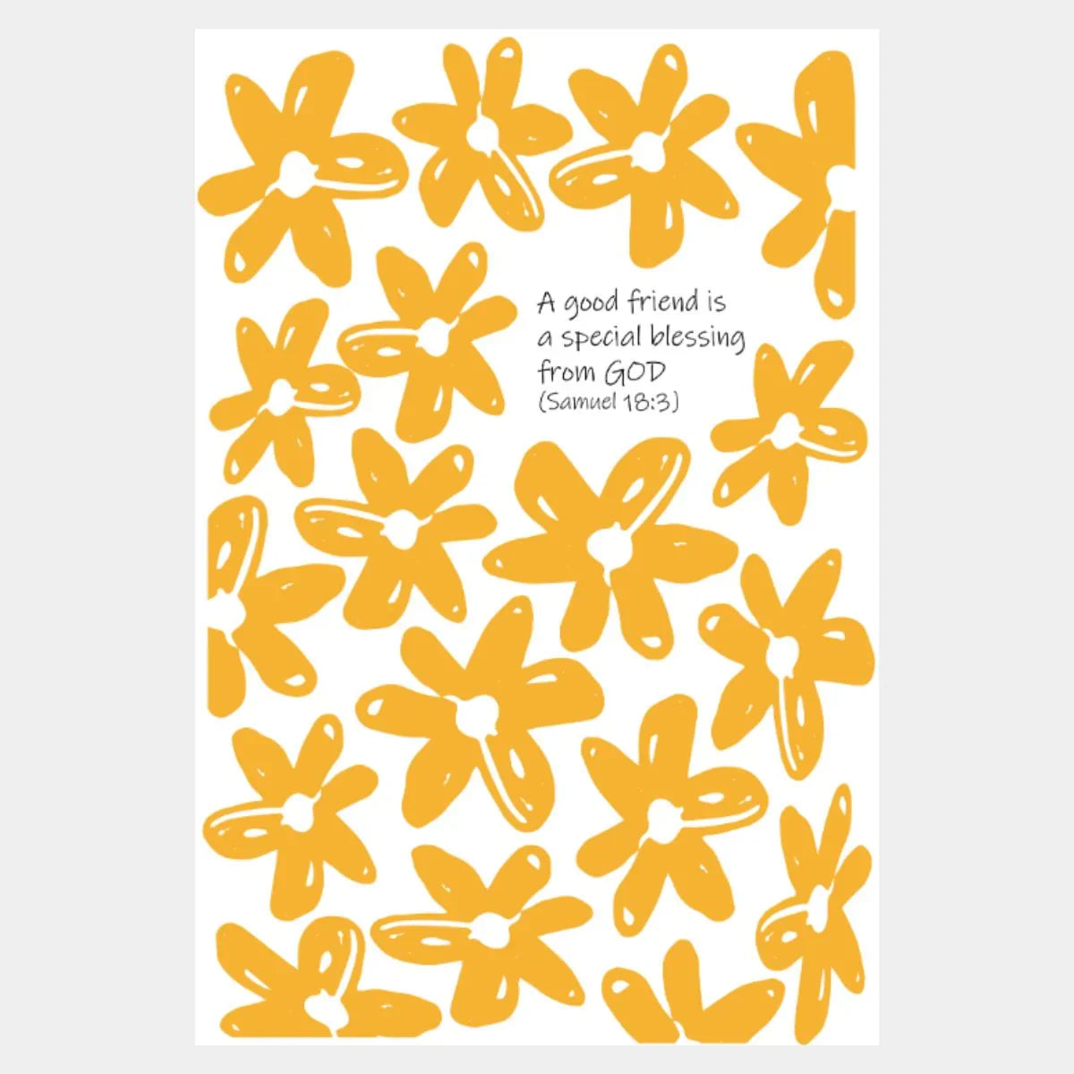 Add a touch of inspiration to your kitchen with this beautifully crafted tea towel featuring the heartwarming bible verse: "A good friend is a special blessing from GOD" (Samuel 18:3) Made from certified organic cotton and ethically produced under fair trade standards, it’s as meaningful as it is practical.