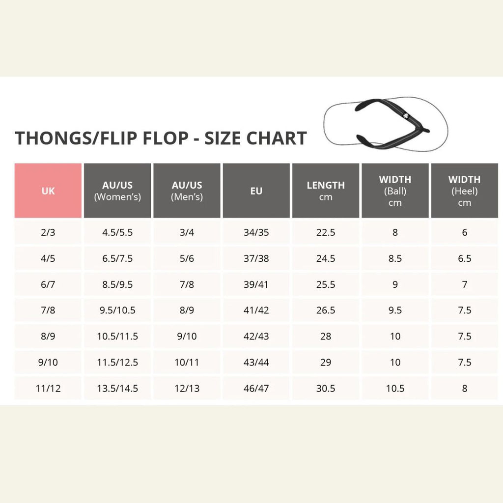 Step out in style and purpose with the Etiko x TLMA Thongs in a range of 6 adult sizes. Made in Sri Lanka through Fair Trade practices, these thongs are crafted from a blend of FSC-certified natural rubber and recycled rubber. Designed for comfort and built to last, they’re perfect for the beach, backyard barbies, or simply kicking around town. Casual footwear with a conscience, supporting people and the planet summer after summer.