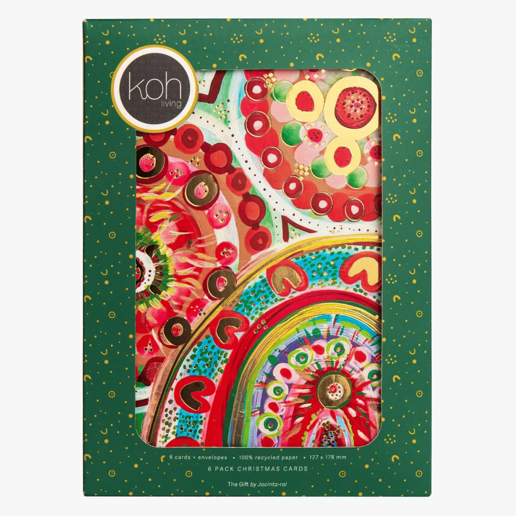 Celebrate with this vibrant set of six greeting cards, each paired with its own envelope. The designs bring a unique artistic touch, filled with meaning and cultural richness. Printed on 100% recycled paper, these cards are as kind to the planet as they are beautiful.